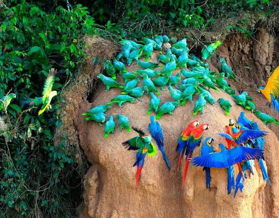 Day 10: Manu Bio StationEarly in the morning we will walk half an hour to the Blanco Macaw Clay Lick and watch as flocks of Parakeets, Parrots and Macaws arrive to eat the clay at the lick. In the afternoon we will visit the Blanco Lake looking for Giant River Otters and lake birds like Hoatzins, Kingfishers, Flycatchers, Grebes and others.